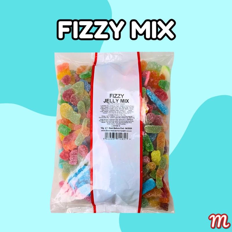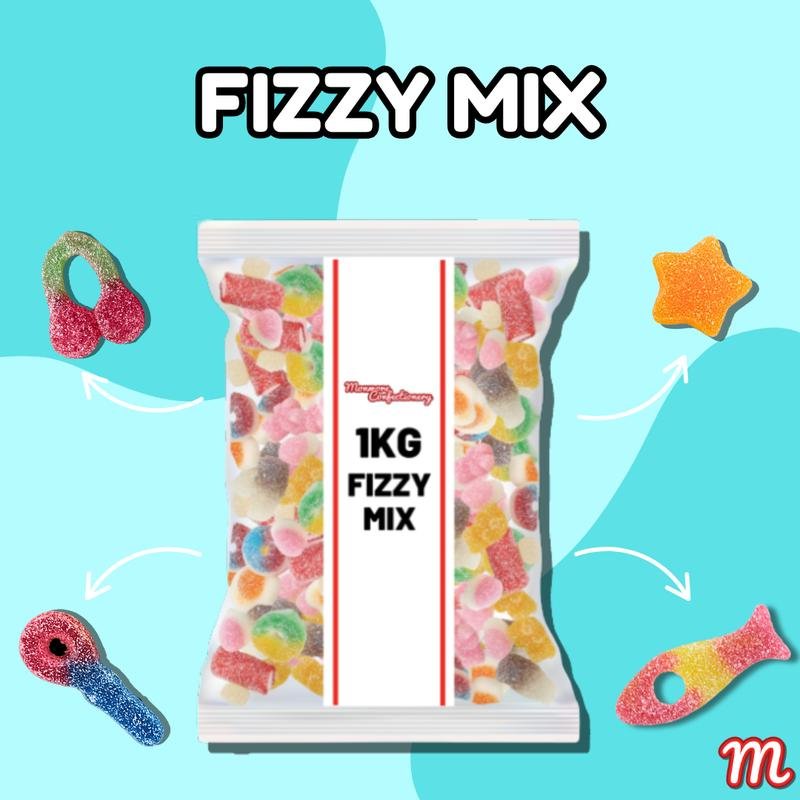 Our 1kg Fizzy mix offers a variety of fizzy and tangy delights in a assortment of shapes and textures!