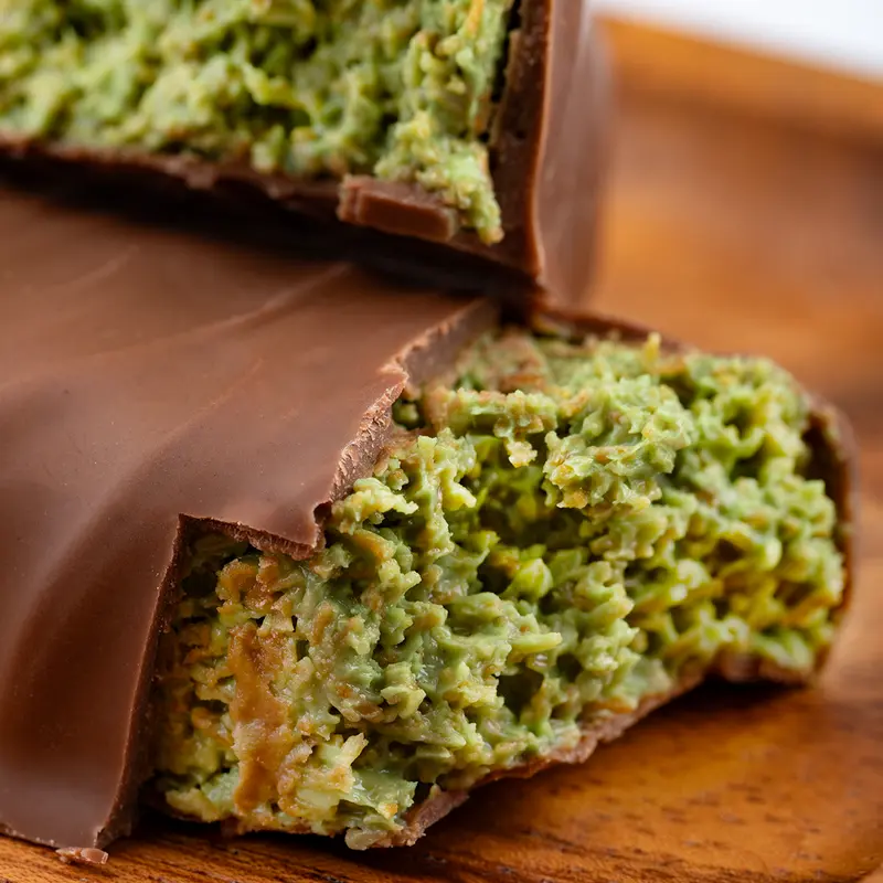 Inspired by the iconic Middle Eastern dessert, the Dubai Chocolate Bar is a bold twist on tradition. With a satisfying kunafa crunch, smooth pistachio-infused cream, and a rich chocolate shell, each bite delivers the perfect harmony of flavor and texture.