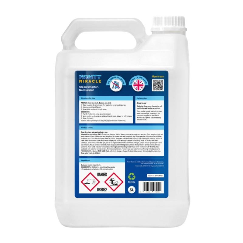 Monty Miracle has revolutionised outdoor cleaning with our patented instant-action formula and method that delivers professional results in minutes, not hours or days. Unlike traditional cleaners that take weeks to show results, Monty transforms your outdoor surfaces in just 6-10 minutes – we really do mean fast! (read instructions before use)
