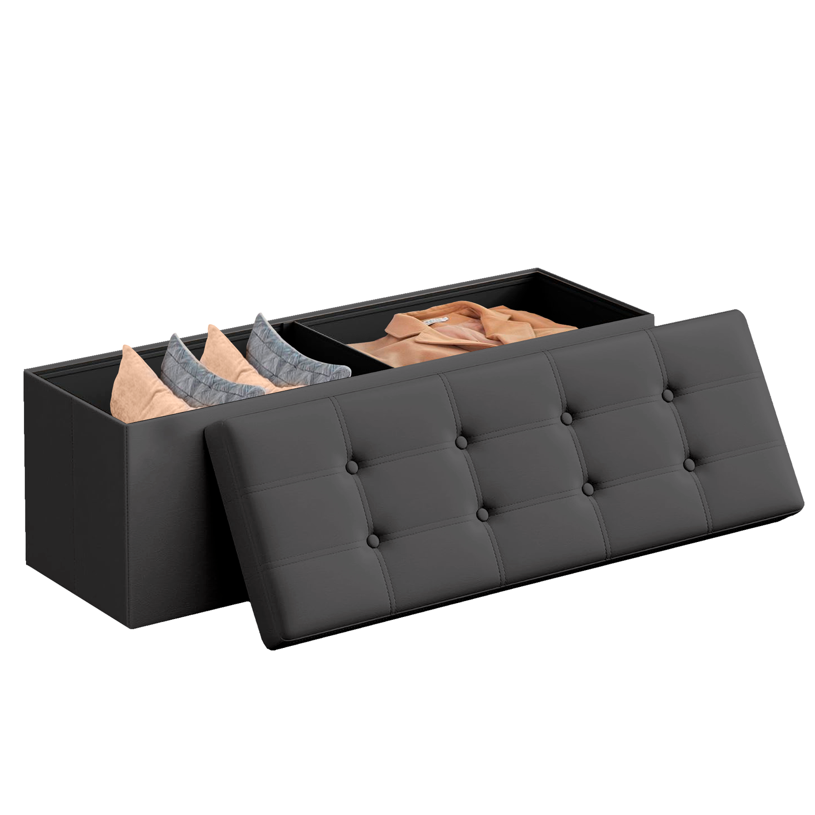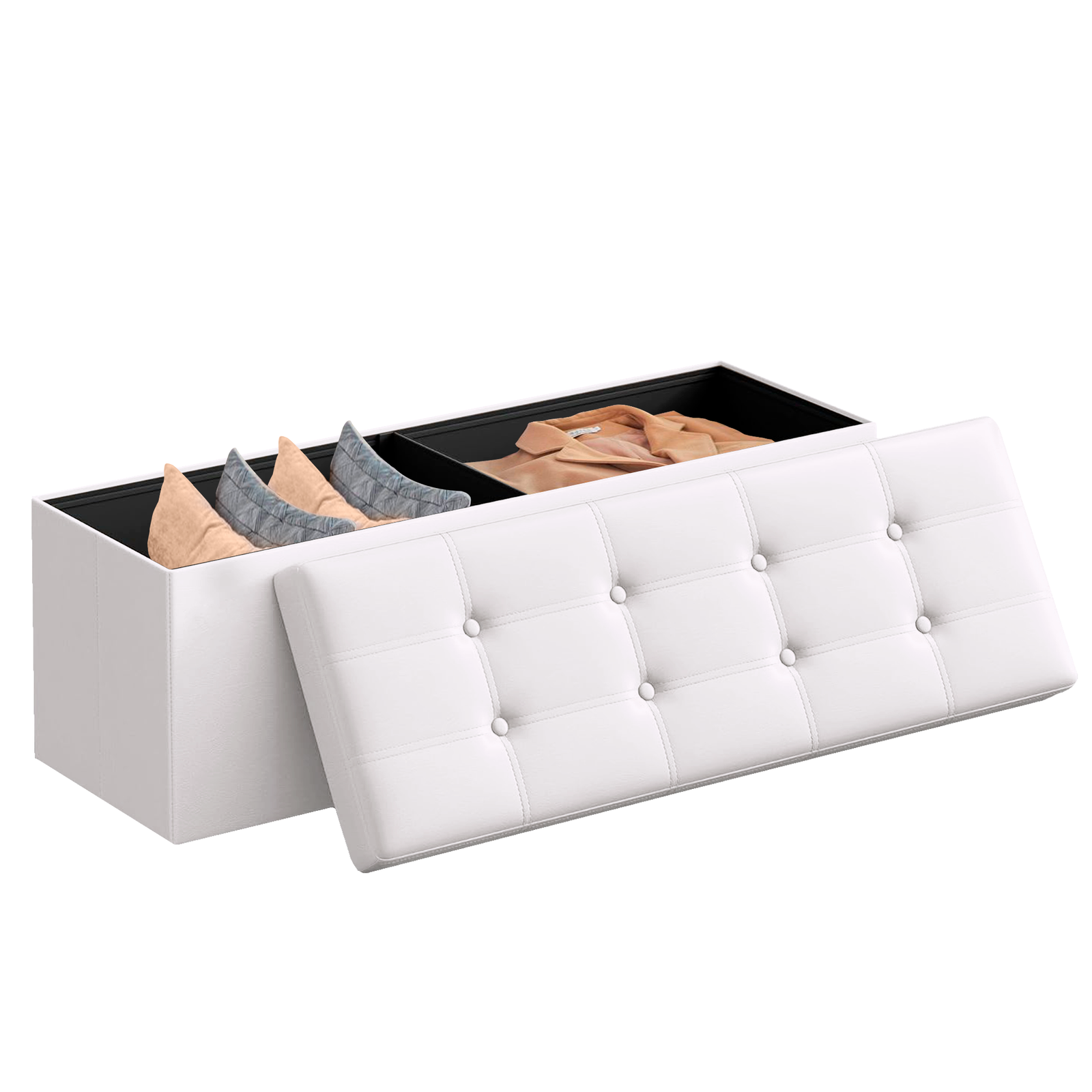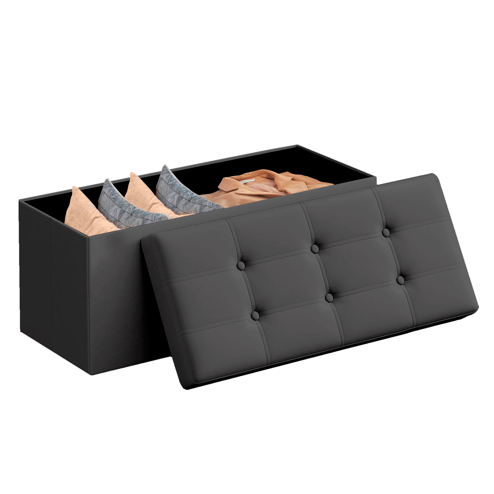 Con una capacidad de 131 L, este puff te ofrece un amplio espacio para organizar tus mantas, libros, ropa o juguetes. Además, su diseño plegable permite guardarlo fácilmente debajo de la cama o en un armario cuando no lo necesites, ahorrando espacio y facilitando su transporte.