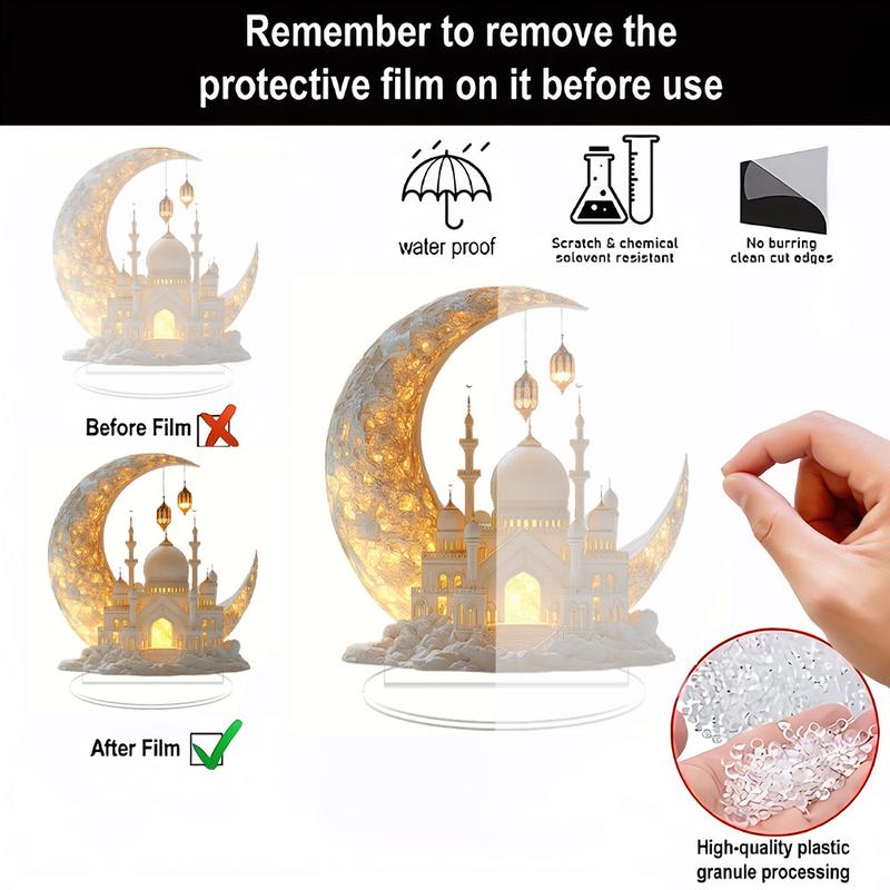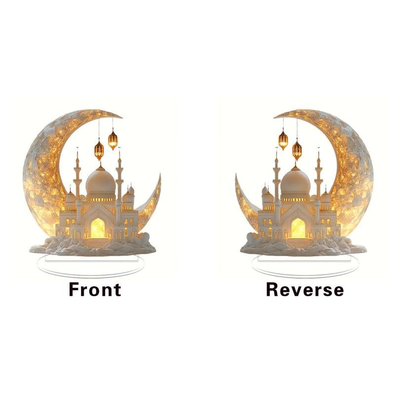 Ramadan Mosque Pattern Decoration with Base, 1 Count 2D Flat Effect Acrylic Table Ornament, Multifunctional Home Decoration for Dining Table, Office, Dormitory Desk