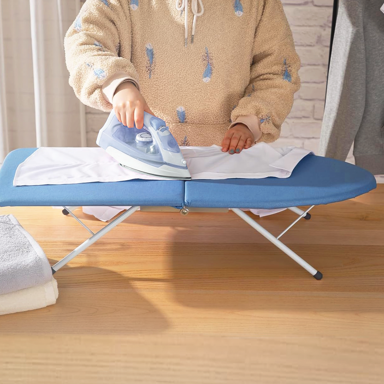 La tabla de planchar se adapta perfectamente a cualquier espacio. Cuando está desplegada, ofrece una superficie de planchado generosa, y cuando no la necesitas, se pliega de manera compacta para guardarla fácilmente en tus cajones.