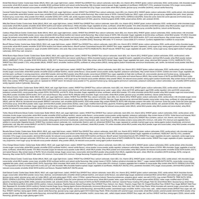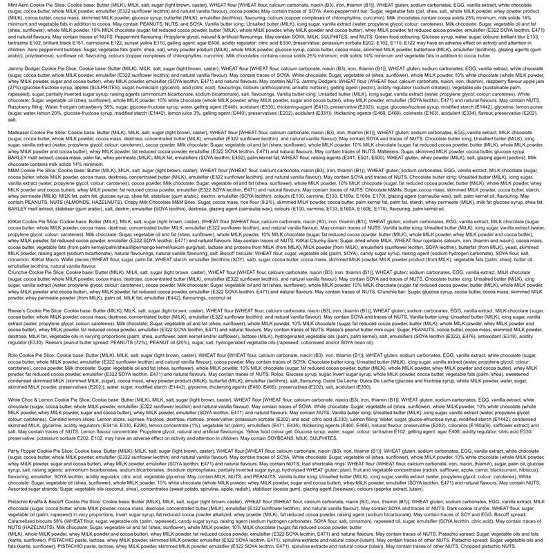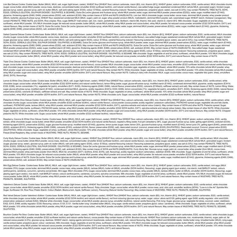 Allergen information: Contains milk, peanuts, nuts, soya, mustard, eggs, gluten-containing cereals, sulphites, and sesame|
